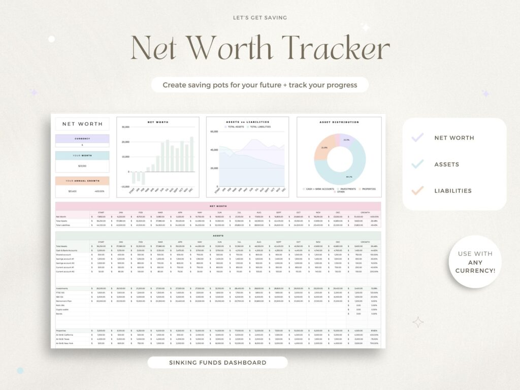 Simple and effective. A great add to my standard budget spreadsheet. One page, and a concise overview of my networth. Not overly complicated or over engineered